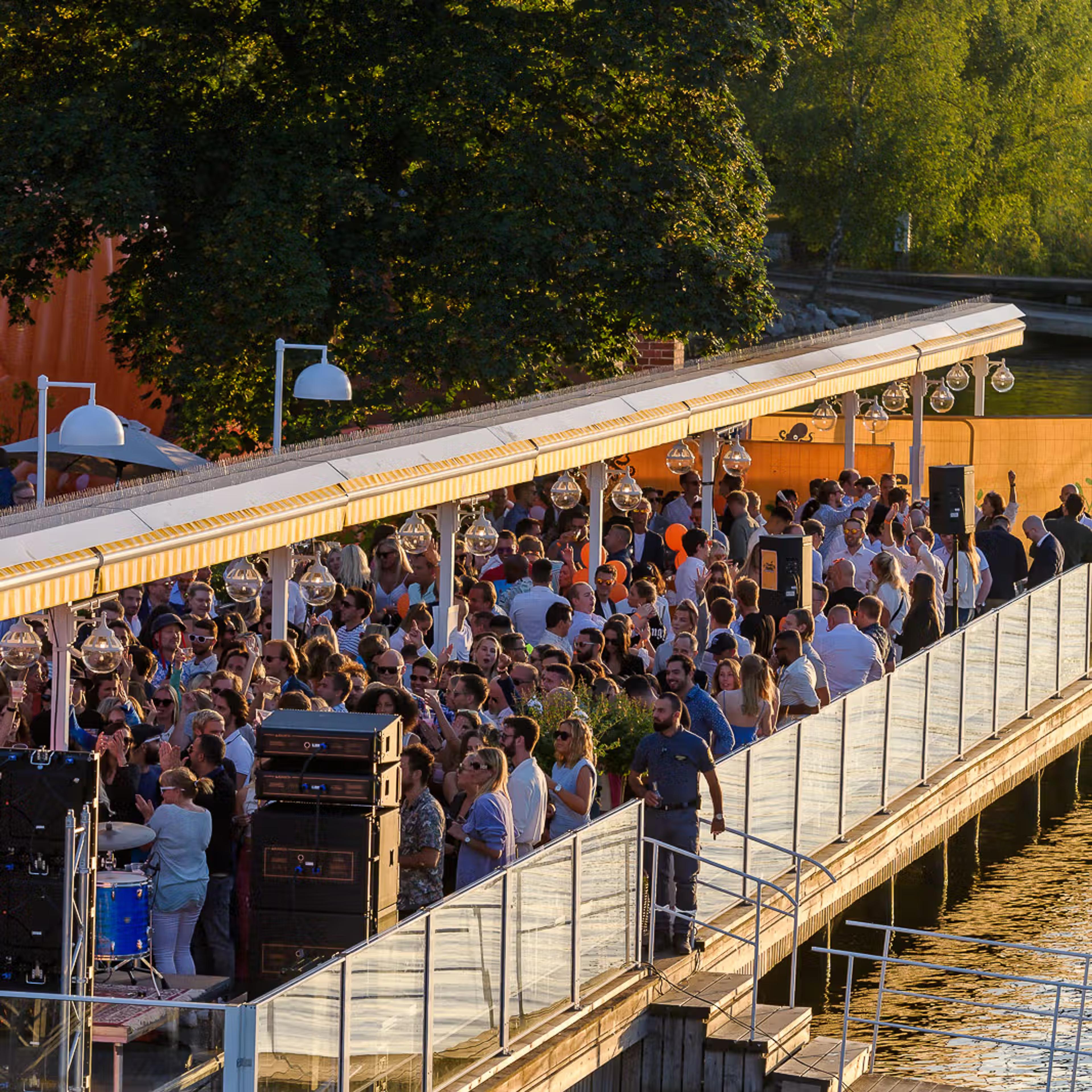 Bryggan erbjuder flera unika miljöer för event vid vattnet, med utsikt över en av Stockholms bästa vyer. Perfekt för både stora och små sällskap, där storslagna fester kan kombineras med aktiviteter på vattnet. Vid event serveras en sharingmeny som skapar en social och levande upplevelse.